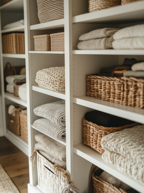 Commencez par une pièce stratégique, comme le salon ou la chambre. En retirant quelques meubles inutiles ou en rangeant les objets visibles dans de jolis paniers ou boîtes, vous créez instantanément un environnement plus apaisant.